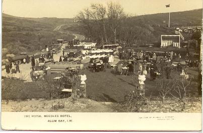 open top charabancs at Alum Bay, I.O.W. in the 1920's (For enlargement, click photograph. Use browser to come back.) |
