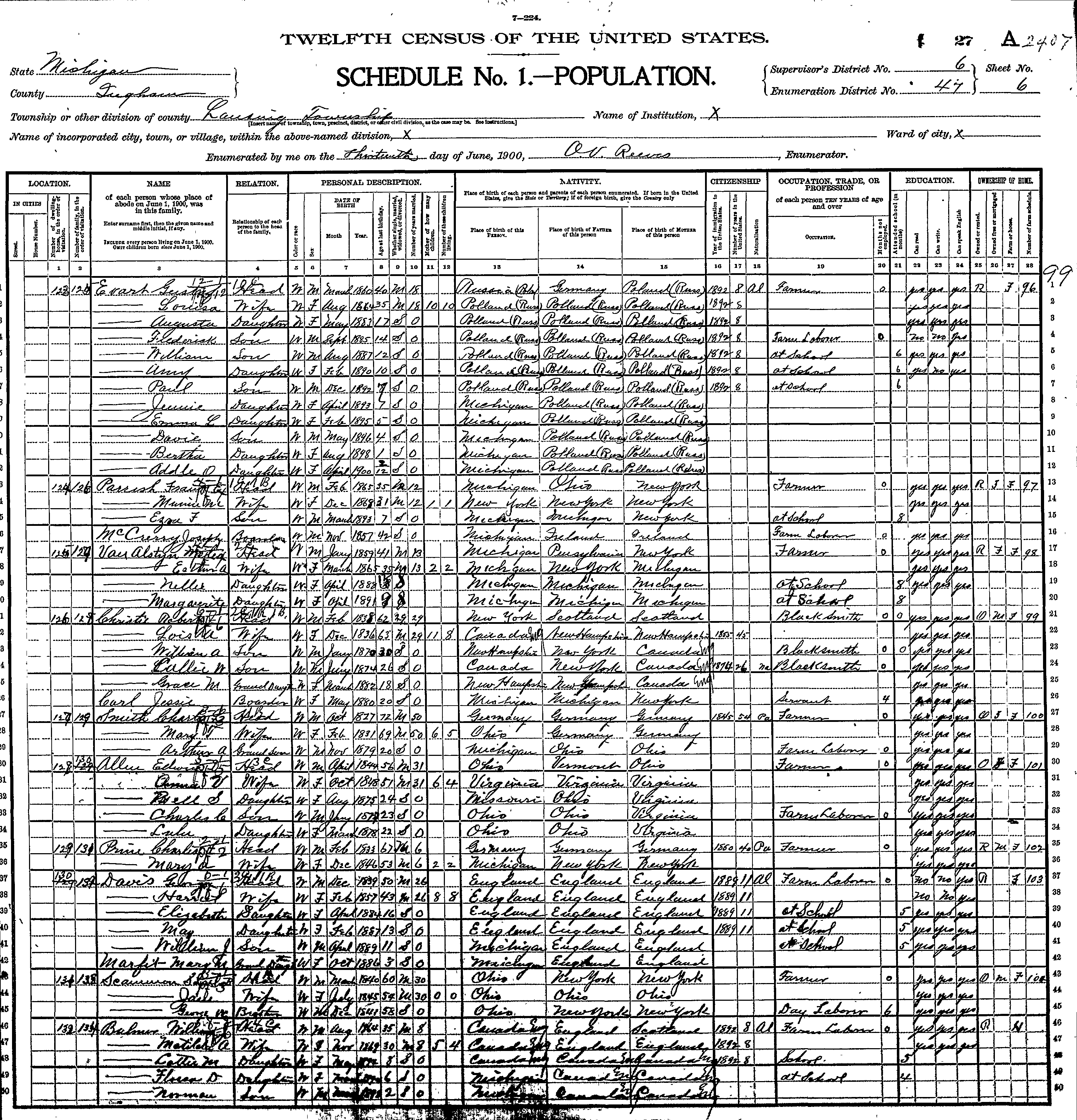 [ ][ ][ ][------ Laura ][Wife ][W][F][Aug][1879][20][M][ 1][ 1][ 1][Michigan ][Michigan ][Michigan ][ ][ ][ ][ ][ ][ ][Yes][Yes][Yes][ ][ ][ ][ ]